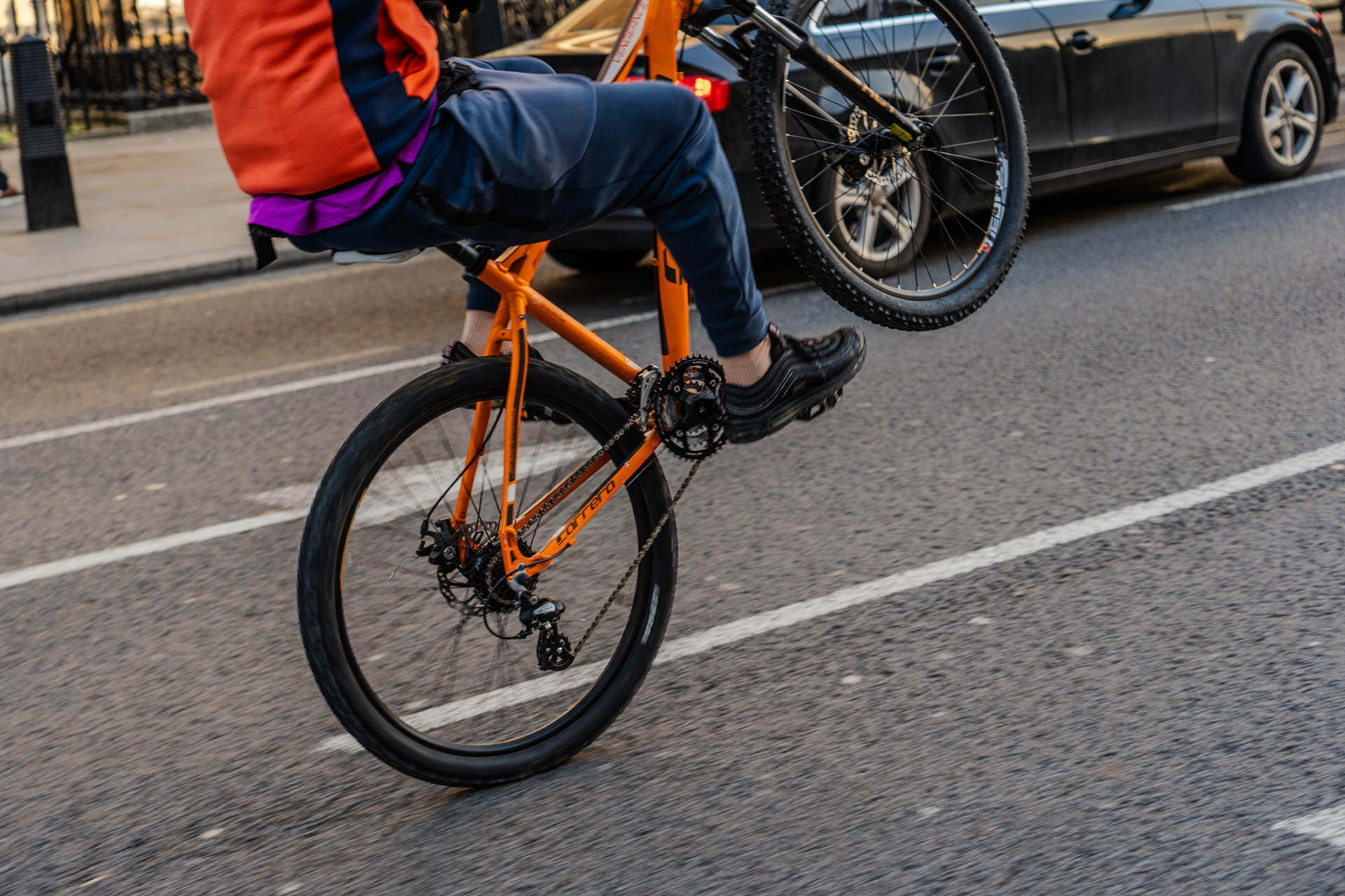 young hoodlum popping a wheelie